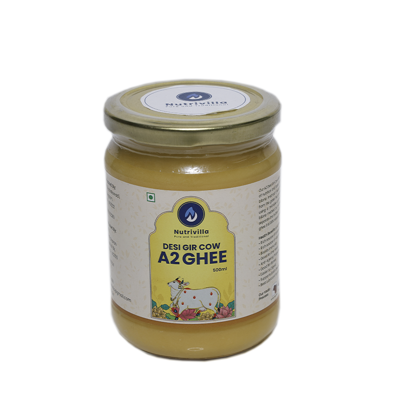 At Nutrivilla, our Ghee stands as a symbol of purity, tradition, and nourishment. Made using the age-old bilona method, it is slow-cooked to preserve essential nutrients and rich flavor. We source high-quality milk from healthy cows, ensuring every drop of ghee is packed with authentic aroma, golden texture, and natural goodness. Free from preservatives and additives, our ghee supports digestion, boosts immunity, and adds a wholesome touch to your meals. Whether for cooking, drizzling, or rituals, Nutrivilla Ghee brings you the pure essence of nature—crafted with care, delivered with love, and trusted for generations.