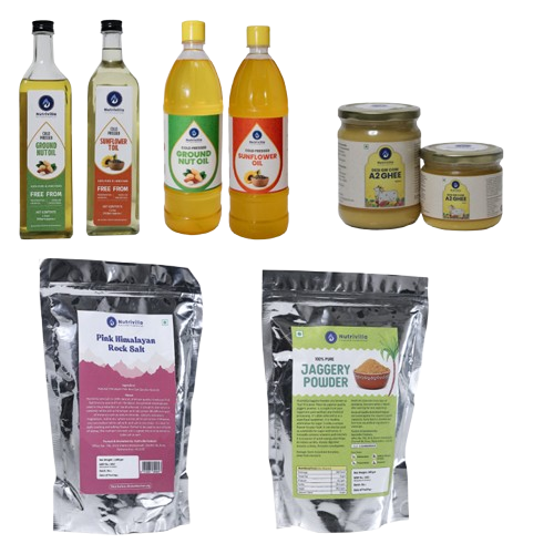 At Nutrivilla, we bring nature’s goodness straight to your kitchen with products that are pure, healthy, and wholesome. Our Jaggery Powder is chemical-free and rich in minerals, while our Pink Rock Salt is hand-harvested for natural purity. We offer Cold-Pressed Sunflower Oil, preserving nutrients for a healthy lifestyle, and Traditional Ghee, made using age-old methods for rich flavor and nourishment. Every product is crafted with care, ensuring quality, authenticity, and wellness. At Nutrivilla, we believe in simplicity, sustainability, and the power of natural ingredients to support your everyday health. Taste the tradition, trust the purity.