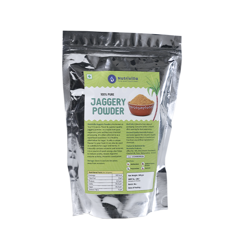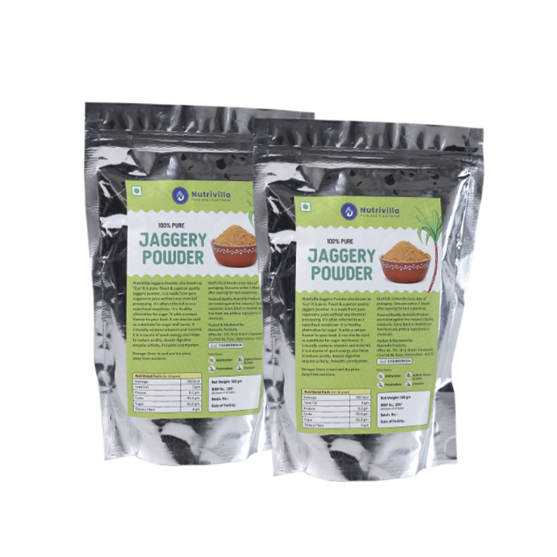 • Nutrivilla Jaggery Powder also known as ‘Gur’, it is pure, finest & superior quality jaggery powder.